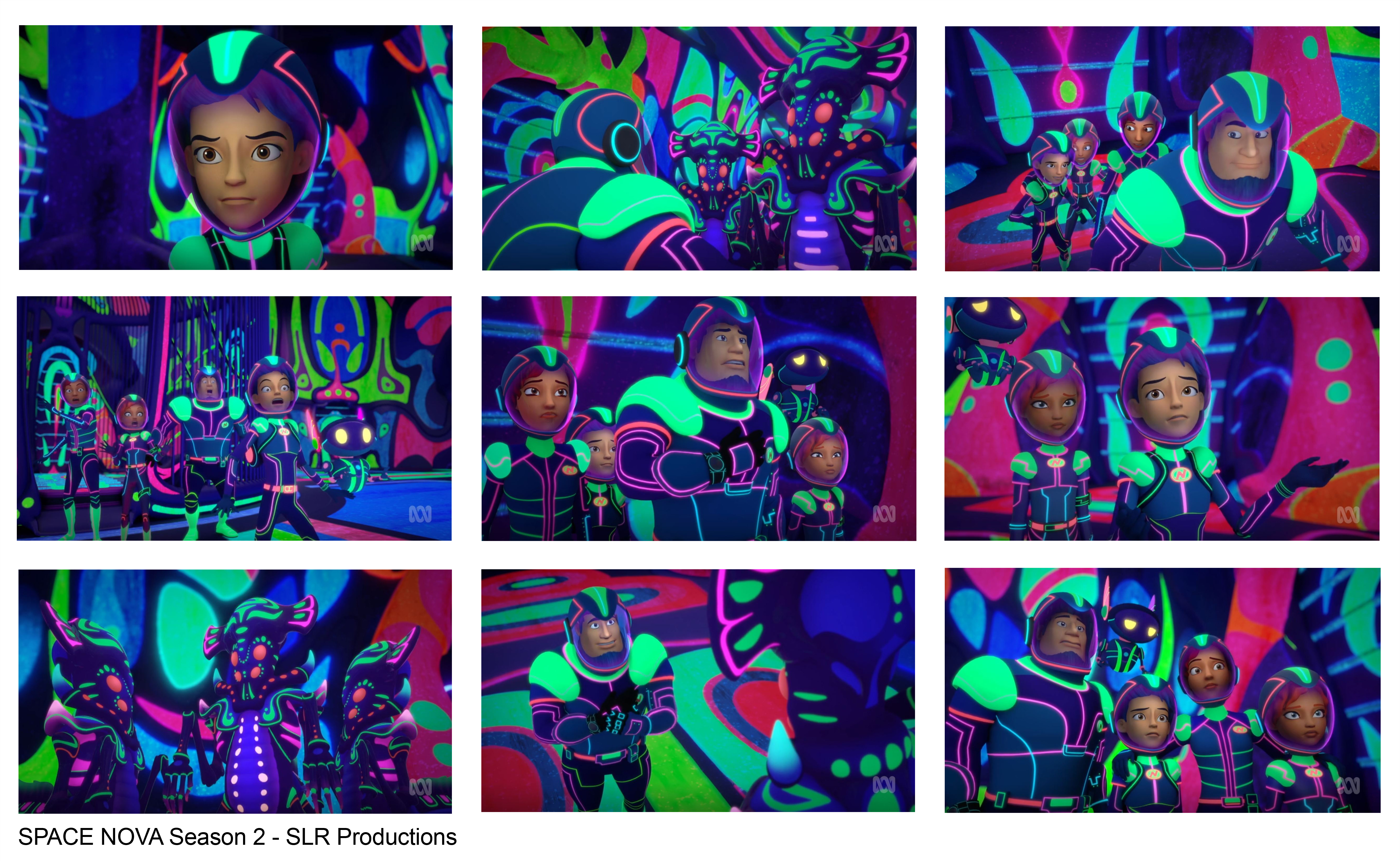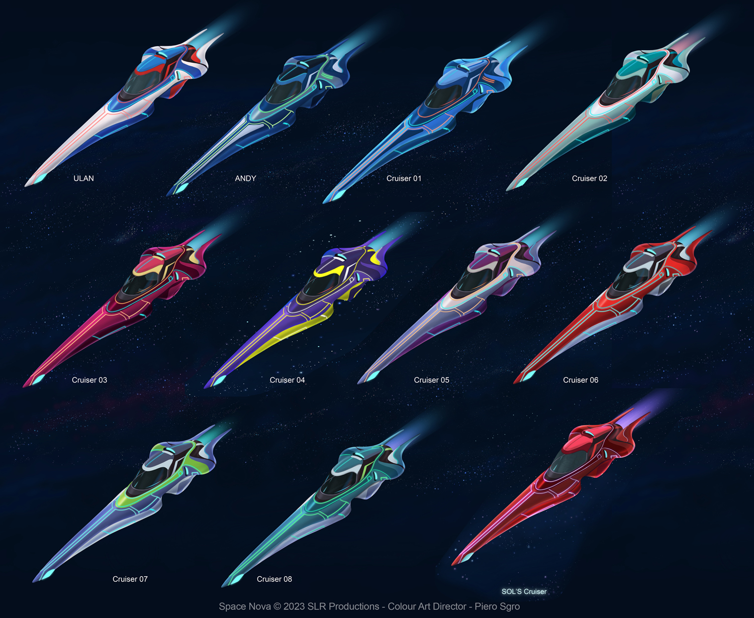 Produced by SLR Productions, Space Nova season 2 was released on April 2025. As Colour Art Director, I provided colour keys and lighting concepts for sets, and matte paintings, at times referencing art department’s storyboards or rough layouts. This would also include Vehicle exteriors and interiors, and a range of props. I would oversee colour treatments for all design work.