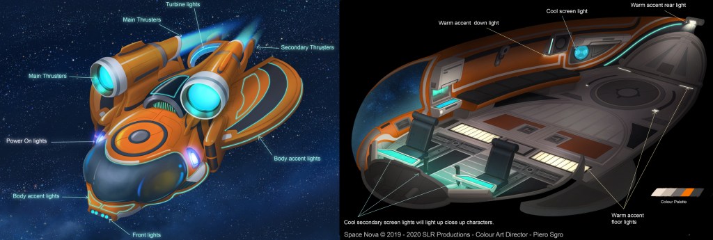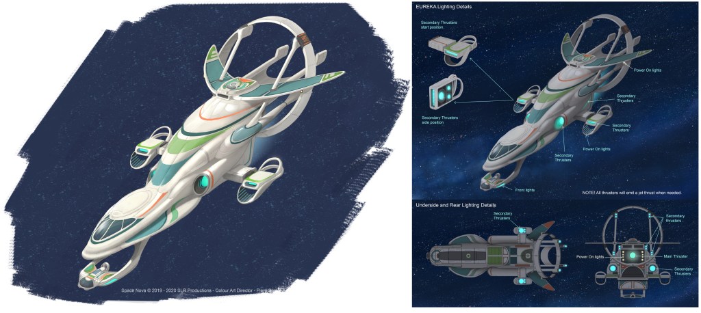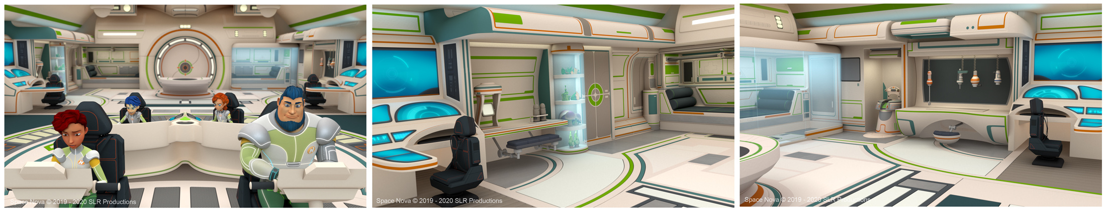 Space Nova was produced by SLR Productions, and will currently produce a new season. As Colour Art Director, I provided colour and lighting for sets, props, at times using the art department’s rough layouts or storyboards.